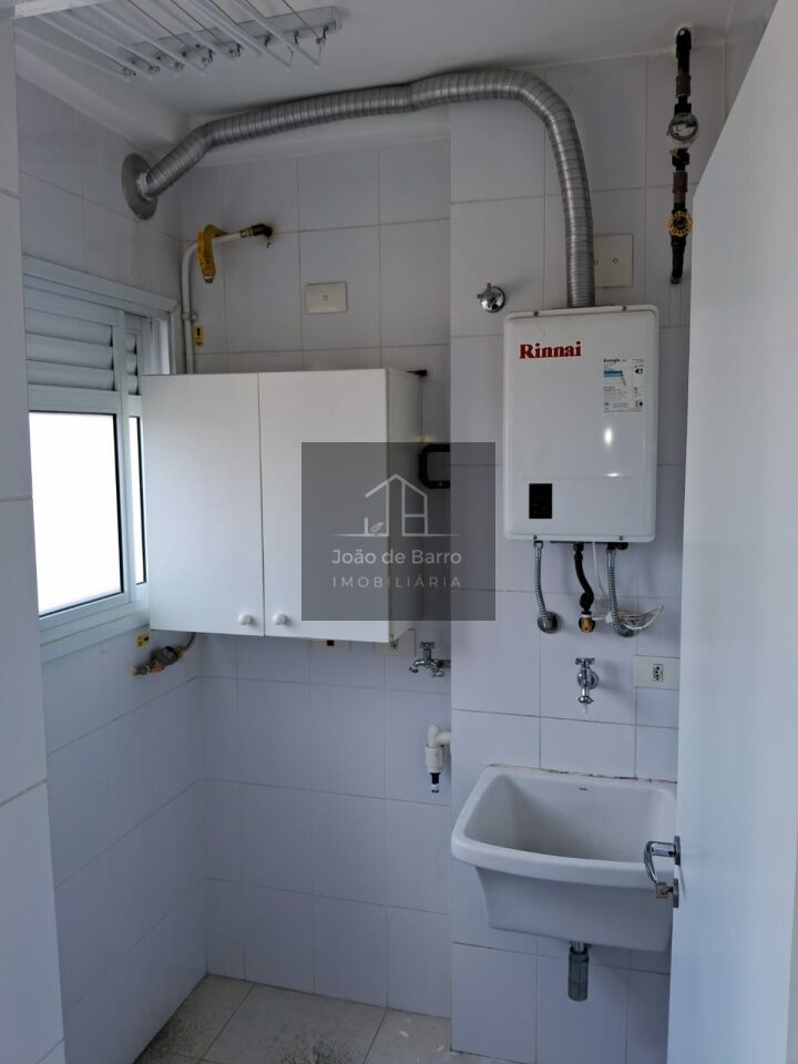 A área de serviço dispõe de janela em alumínio e armário na lavanderia. O imóvel também conta com aquecedor de água e luminárias instaladas.