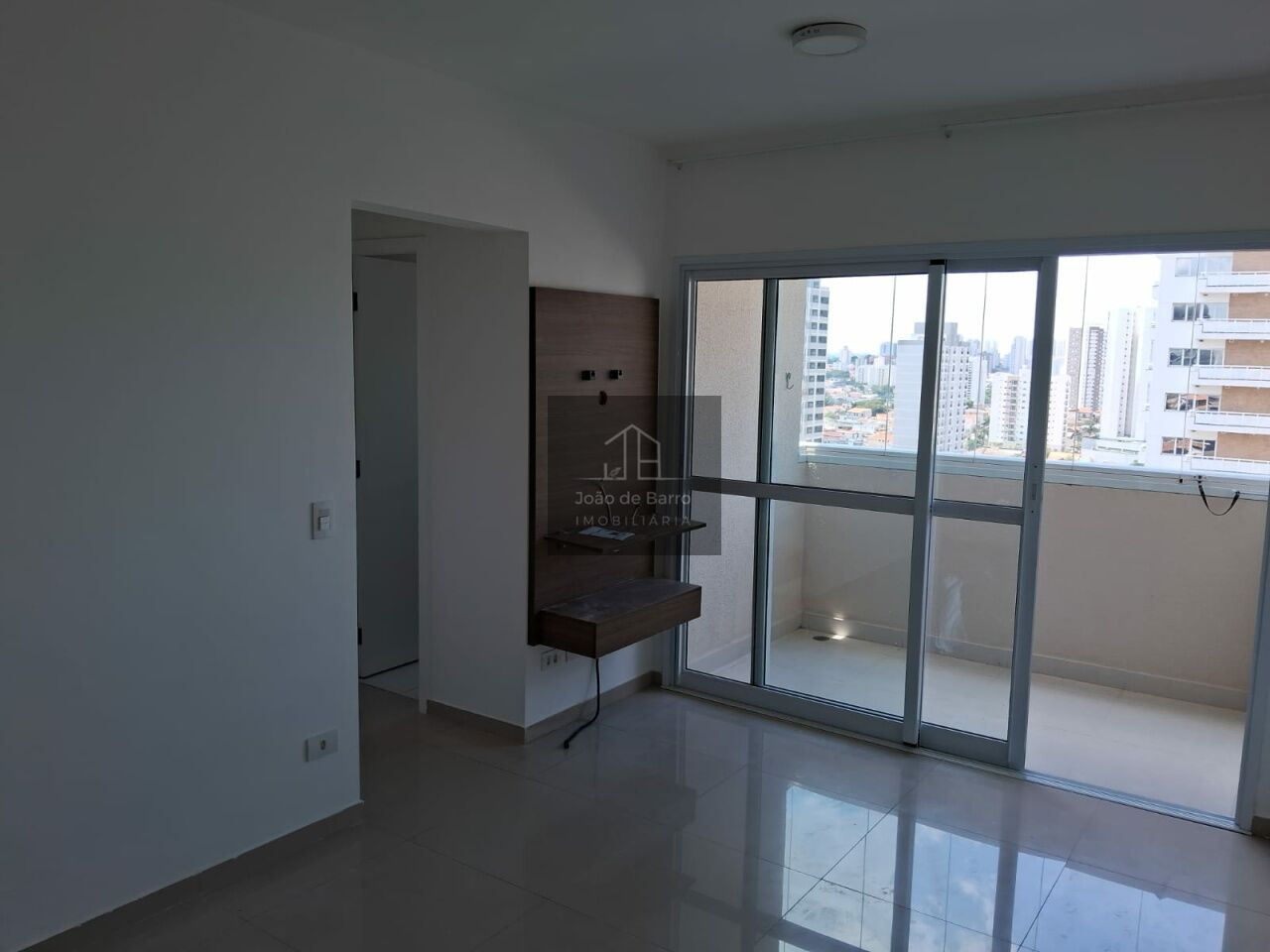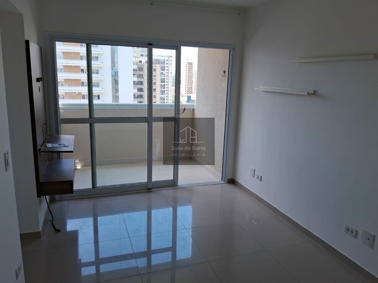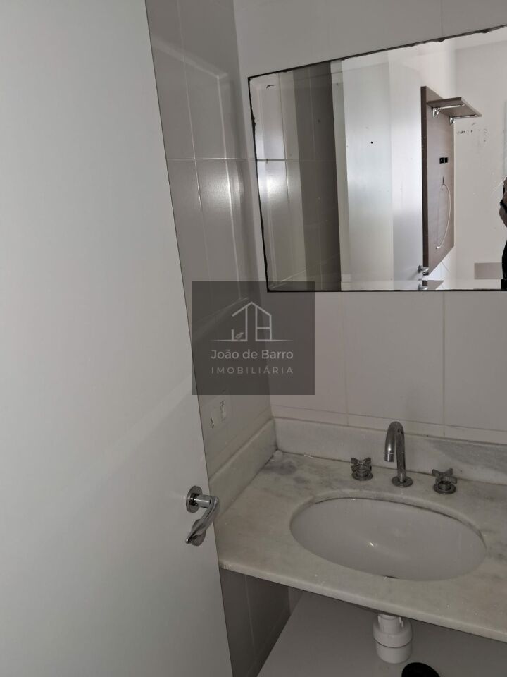 Imóvel em andar alto semi mobiliado, já equipado com piso em todos os ambientes. Possui cozinha com armários e filtro, além de gabinetes nos banheiros. Os dois banheiros contam com box de vidro, espelhos e duchas.