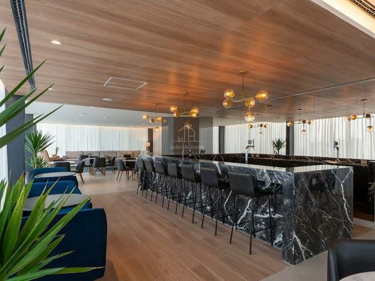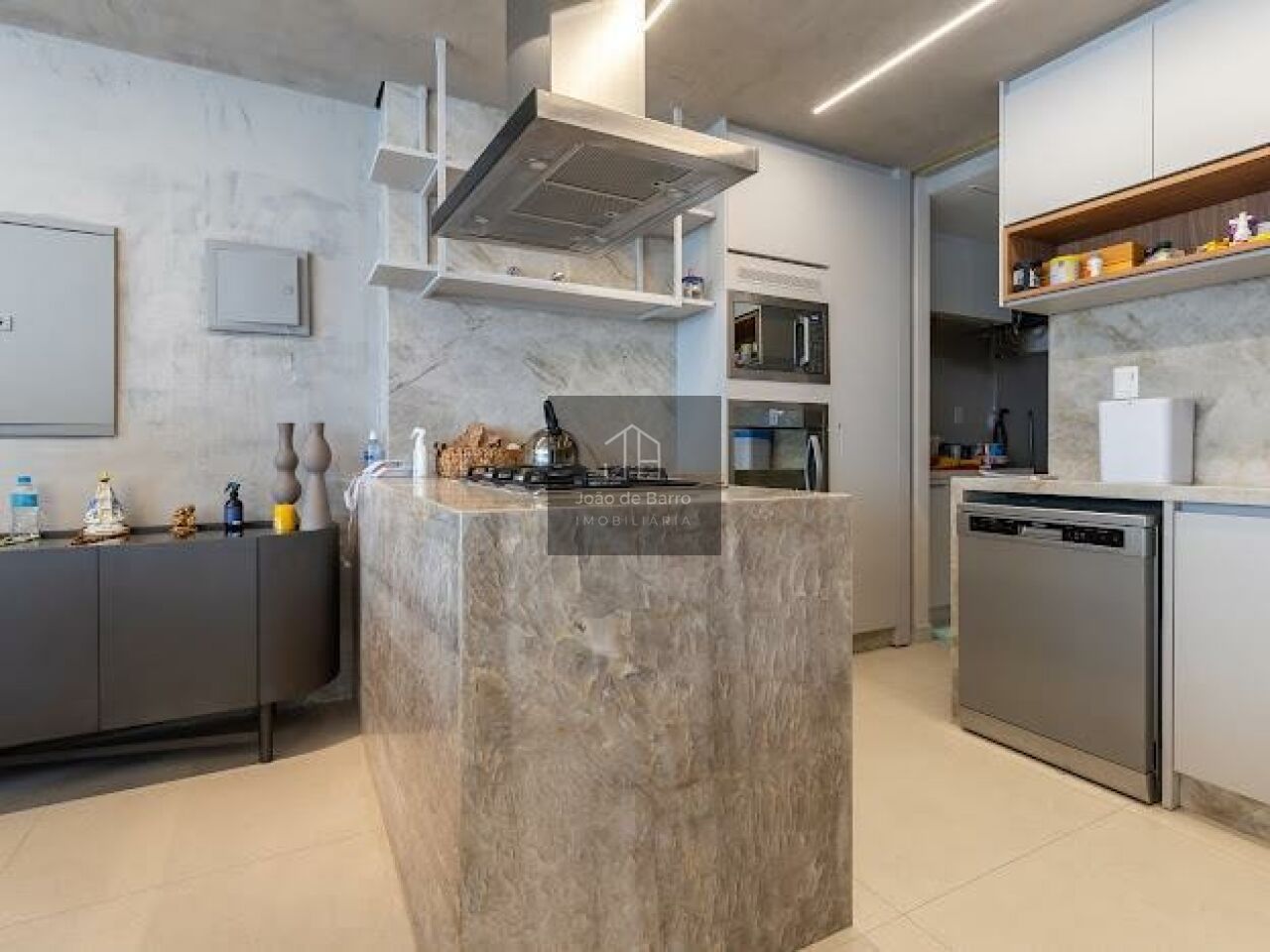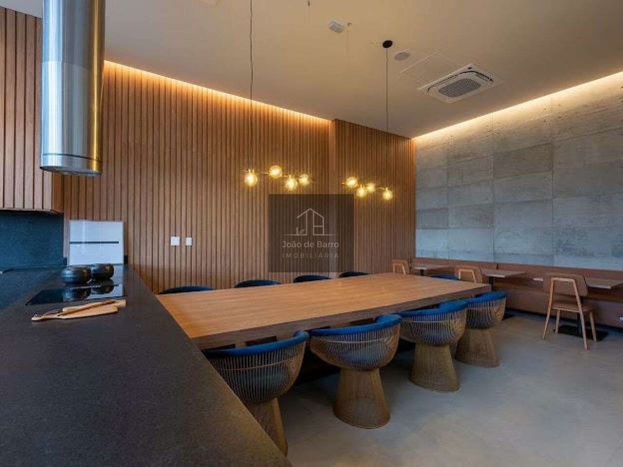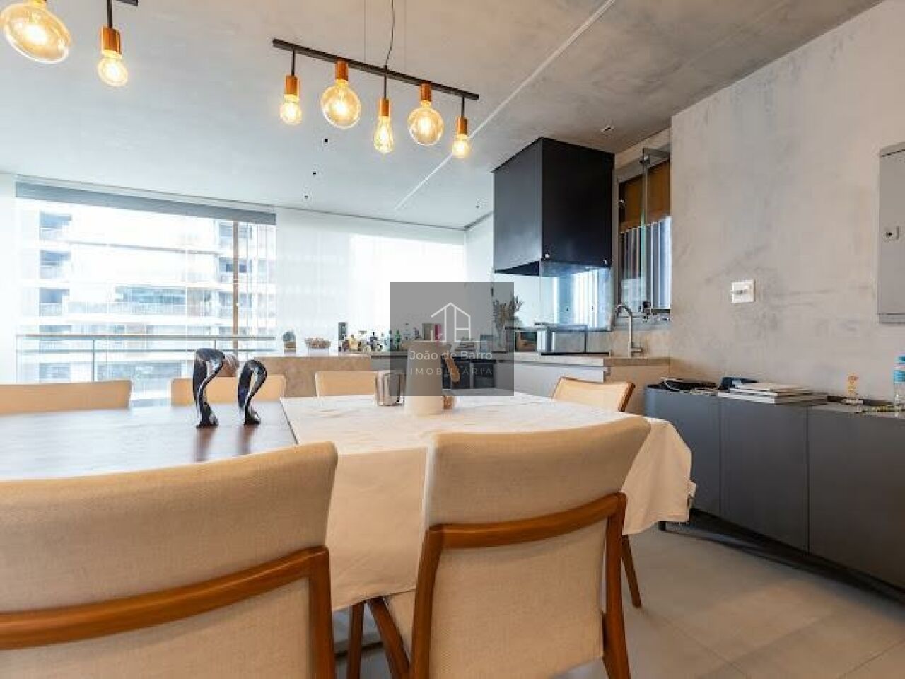 O living é generoso, com integração perfeita entre sala de estar, jantar e espaço gourmet, ideal para receber. A cozinha é moderna, com bancada ampla e acabamentos de alto padrão, conectada à área social, trazendo funcionalidade e elegância ao ambiente.