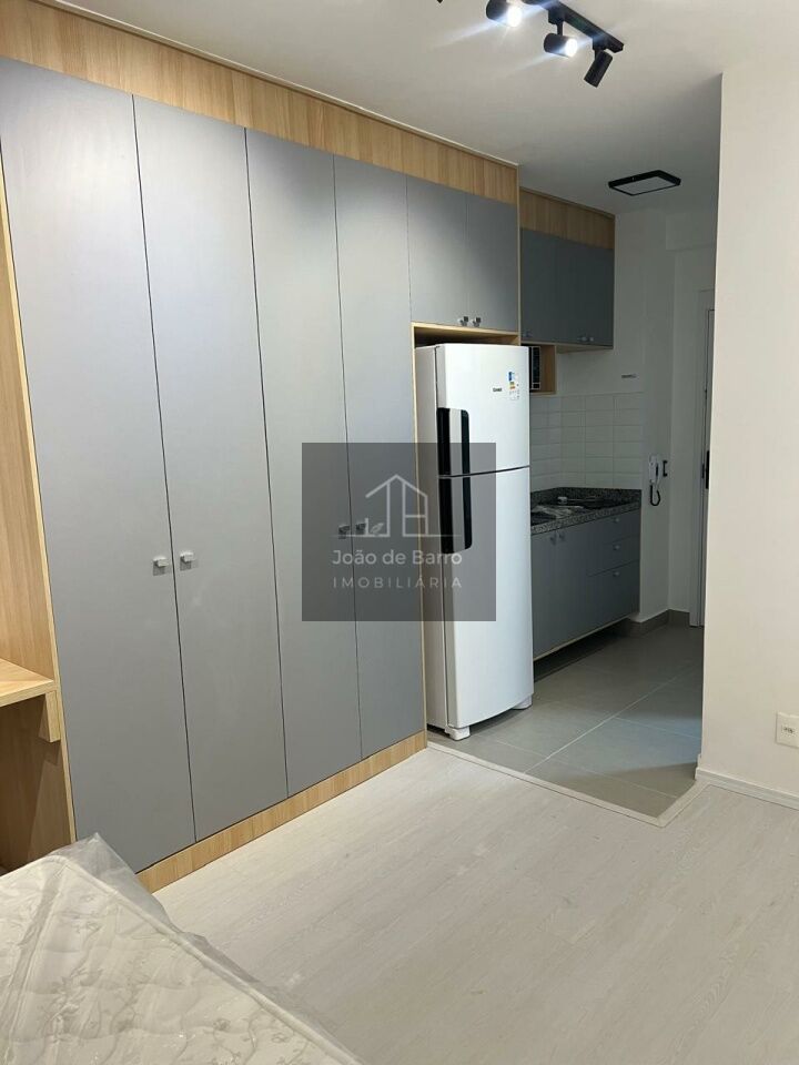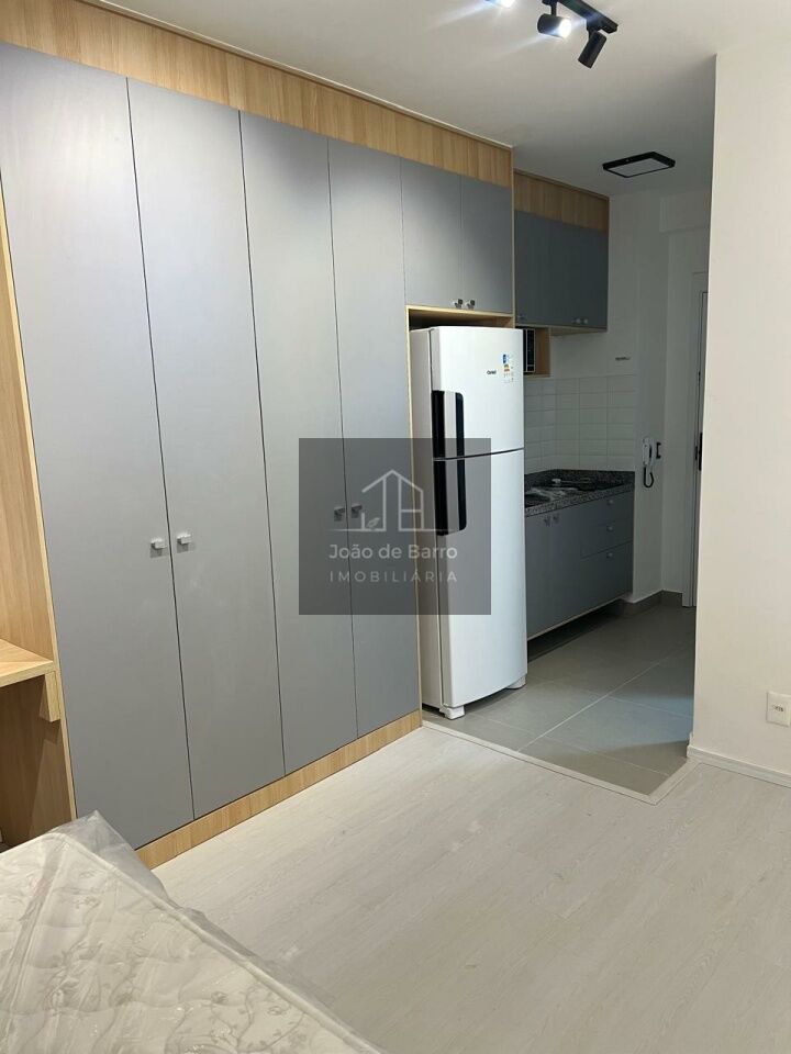 O studio ideal para quem busca praticidade, conforto e um espaço moderno.A planta é bem distribuída, com sala integrada à cozinha criando um ambiente funcional, agradável e com boa iluminação natural. A cozinha é equipada com geladeira de duas portas, fogão elétrico, micro-ondas e armários .